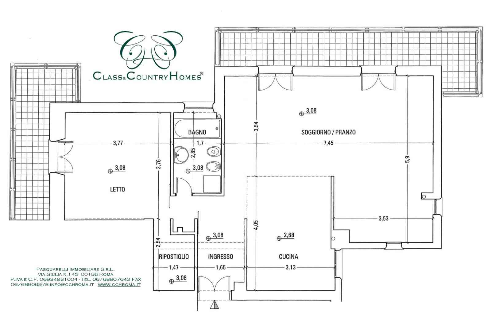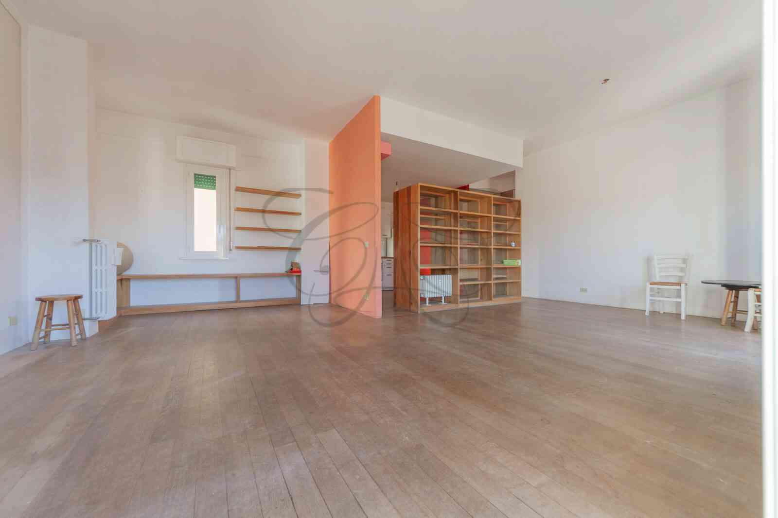 A pochi passi dalla Stazione Trastevere, appartamento di 95 mq con grande living e balconate.