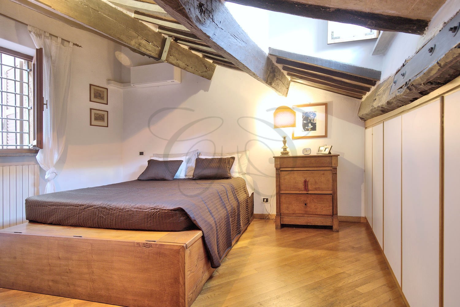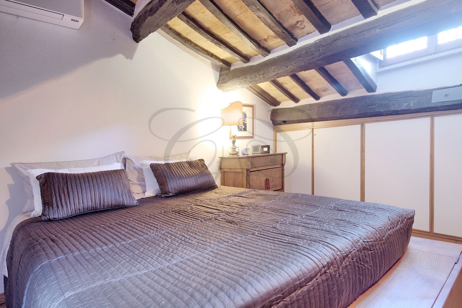 A staircase from the living room leads to the live-in loft with adequate heights. Here is a bedrooms and leads to the lovely terrace set among the roofs of the surrounding historic buildings.