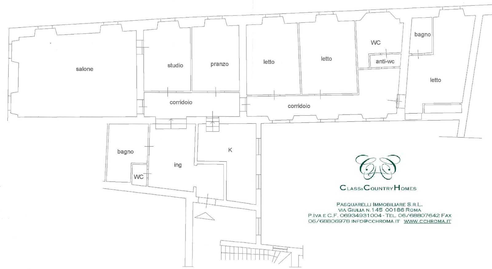 Despite being surrounded by the most visited monuments in the world, it is isolated from the noise of the historic center of Rome. The building does not have a lift, with the possibility of installing one, but offers a monumental staircase to reach the apartment.
