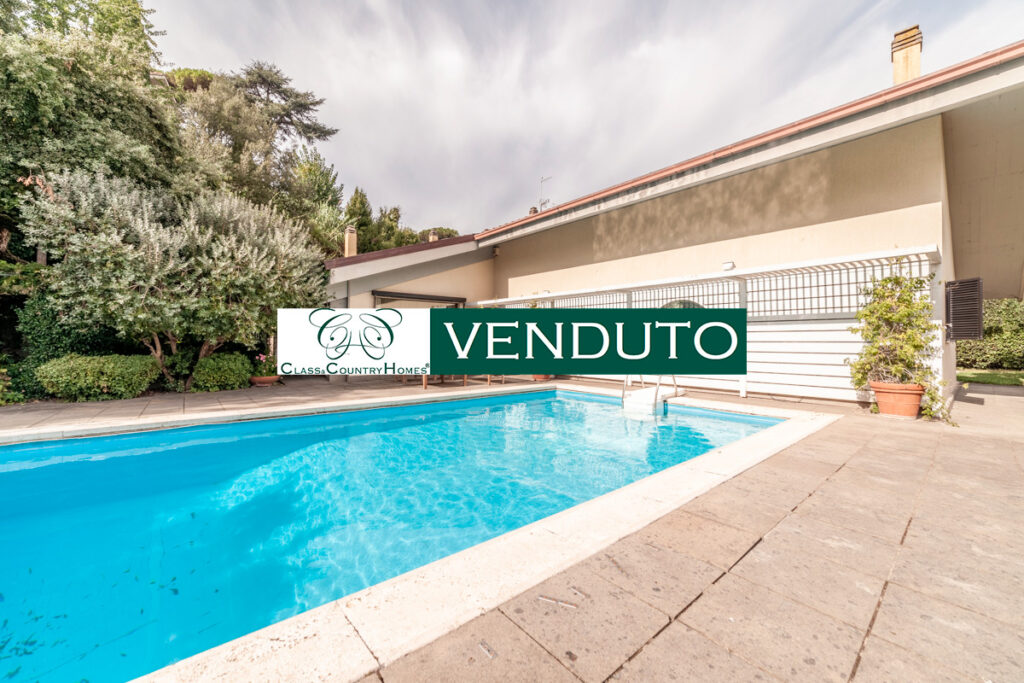 Situated in one of North Rome’s most secluded and verdant areas, between Via della Camilluccia and the Olympic Stadium, this distinguished villa is set within a small, exclusive residential development.
