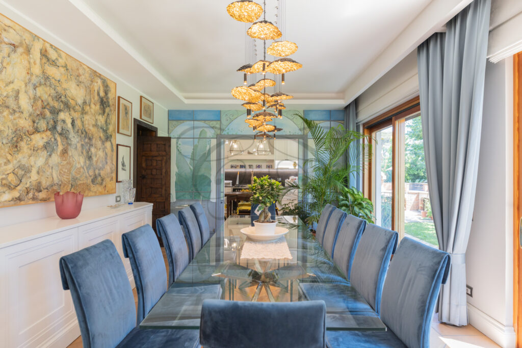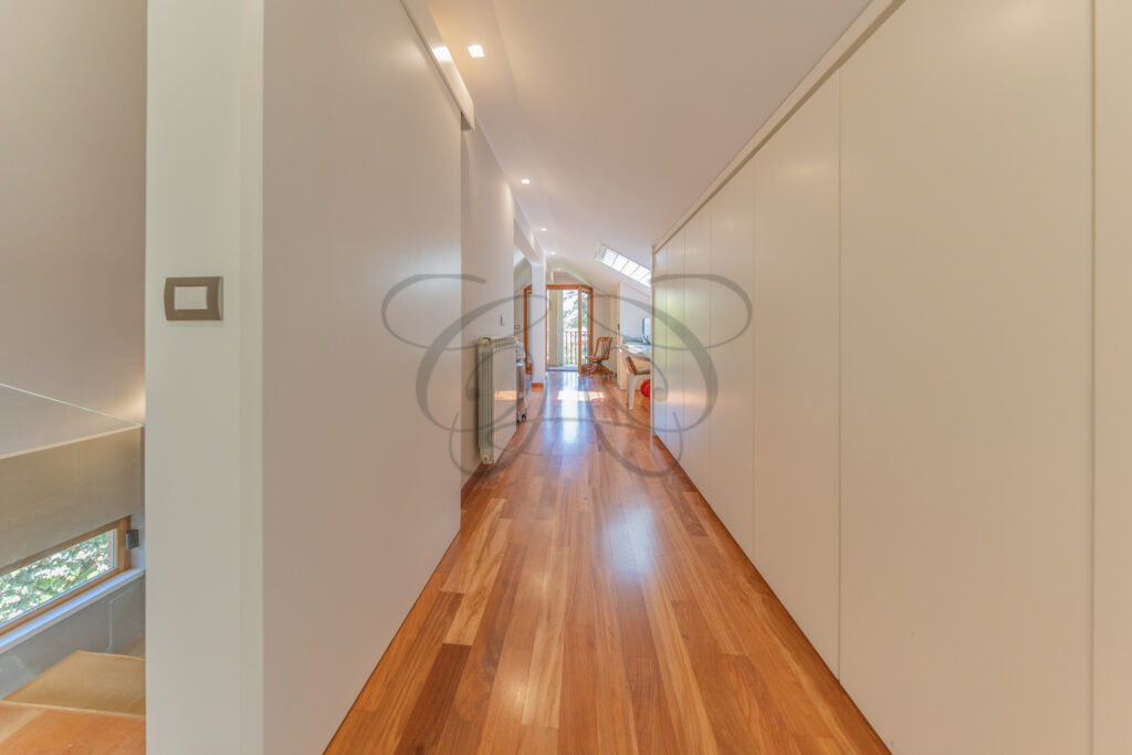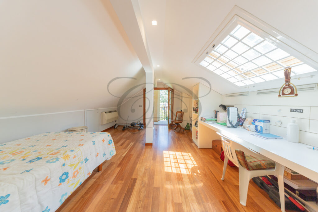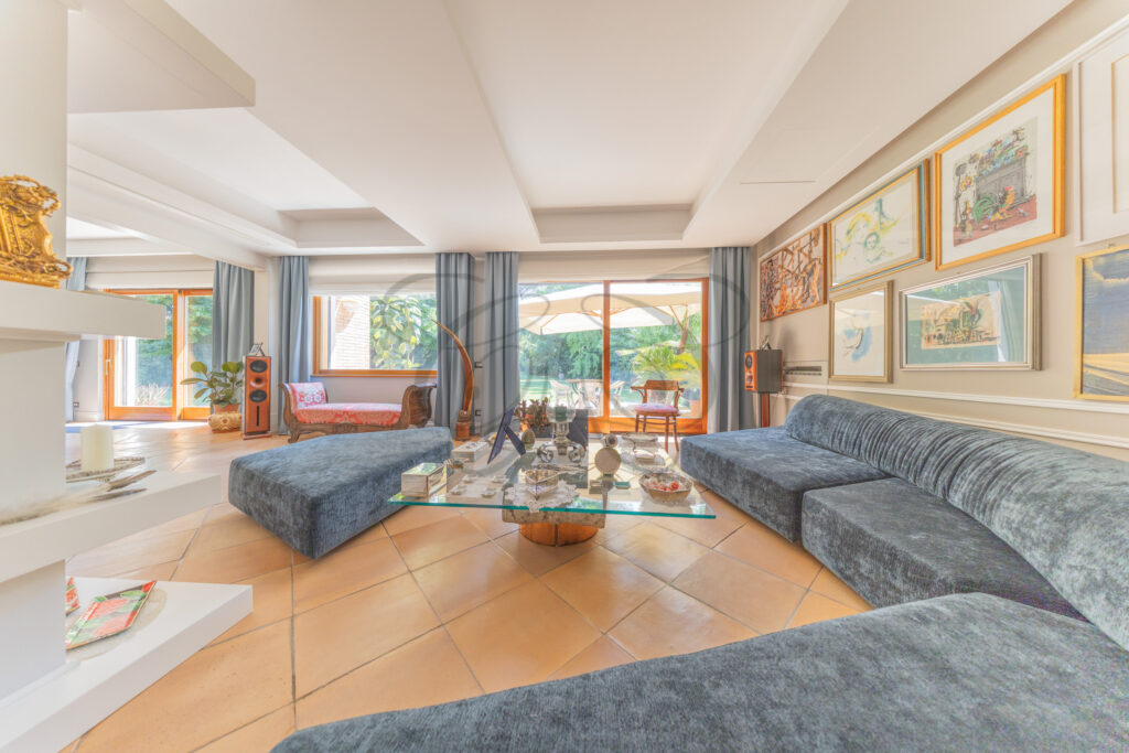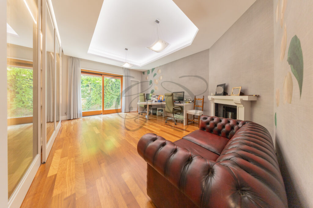 The property’s expansive layout is harmoniously arranged over three meticulously planned levels. Every space has been carefully designed for well-being, featuring elegant finishes and impeccable maintenance. The villa is surrounded by a magnificent, lush garden and a private forecourt for guest parking. A convenient ramp leads to a substantial 76 sqm garage, comfortably accommodating up to four cars.