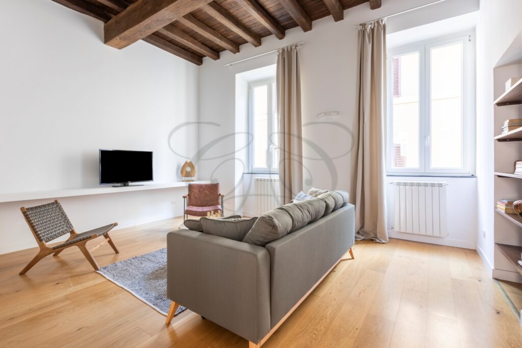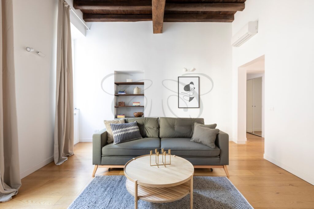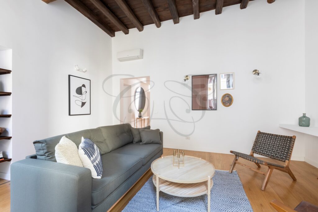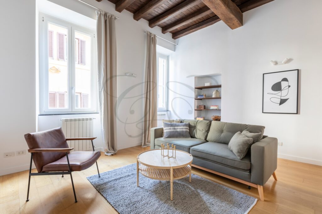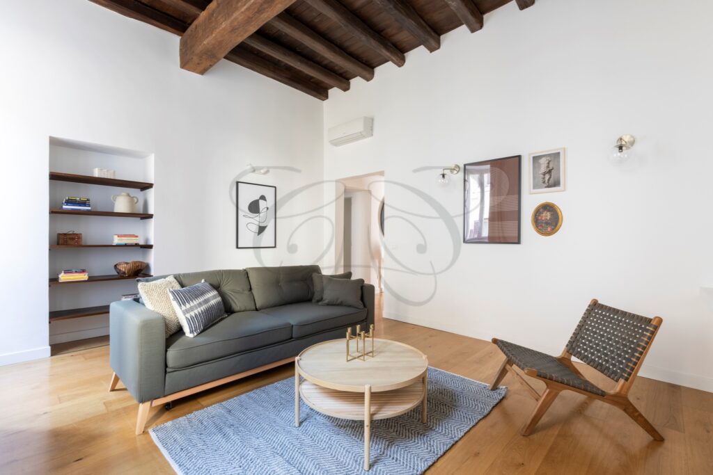 This Ready to Live Flat Rome Center is situated in one of the most enchanting locations in Rome’s Baroque Area. A street of medieval origin, its 500-meter length connects Piazza Navona, just a few minutes’ walk away, with Castel Sant’Angelo and the Vatican area. Historically frequented by pilgrims transiting from the Port of Ripetta, it owes its name to the high concentration of sacred art workshops that have always flourished in this area.