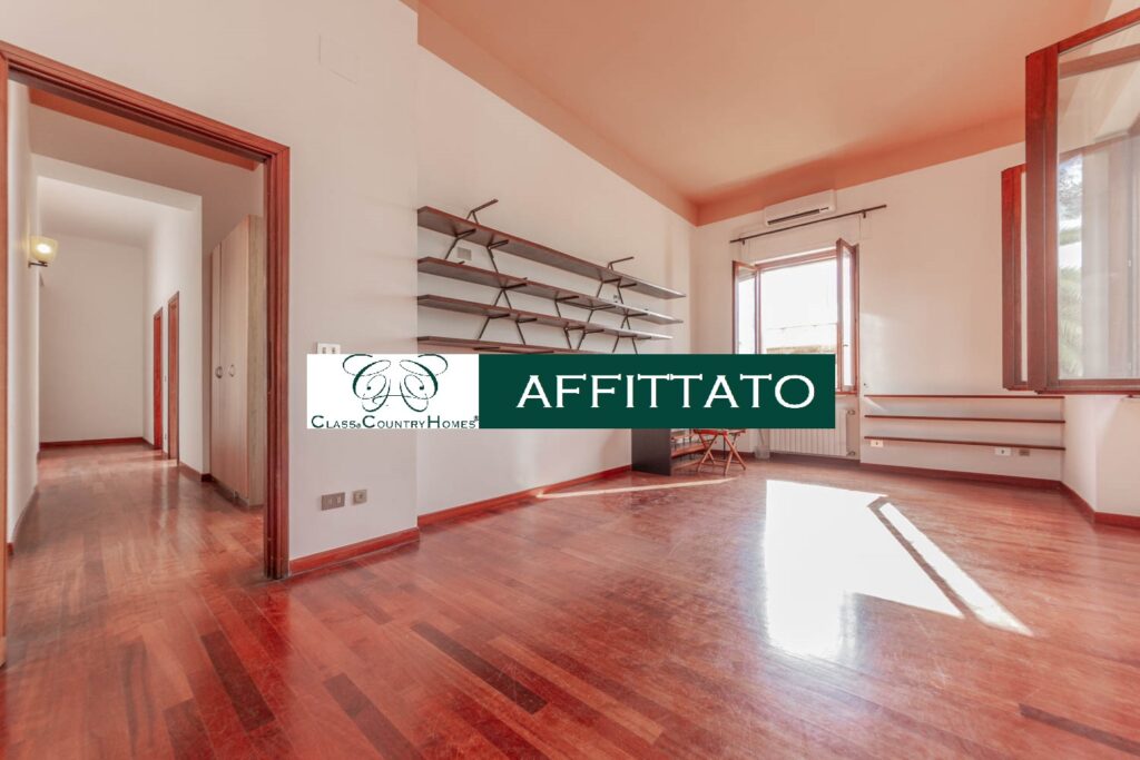 Sulle pendici del colle Gianicolo, appena sopra Trastevere, luminoso appartamento bilocale panoramico di 72 mq in affitto.