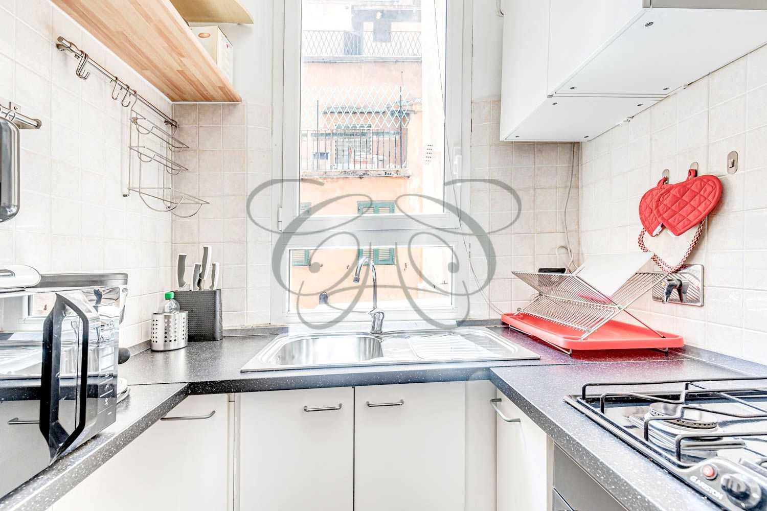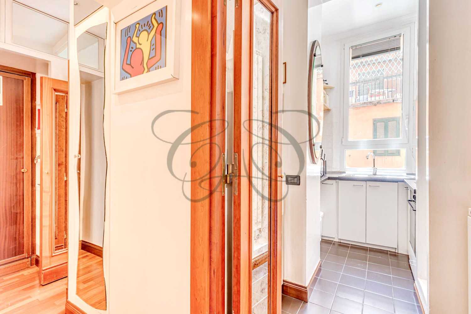 L’appartamento è un open space, moderno, riccamente rifinito di 50 metri quadri. Ristrutturato di recente, presenta interni luminosi, con parquet e grandi finestre che si affacciano sulle vie del centro di Roma.