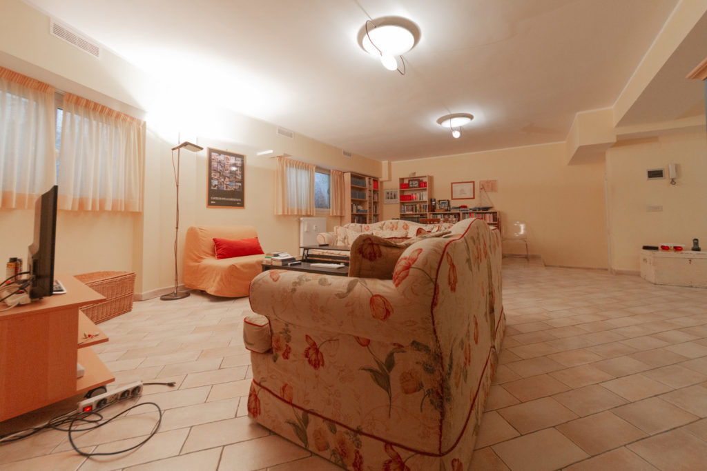 Attraverso una scala esterna si raggiunge il piano inferiore, dove nei locali magazzino è stata sapientemente ricavata una family room con due finestre, utile come soggiorno o sala giochi per i più piccoli. A seguire, il cucinotto, la quarta camera e il terzo bagno della casa, oltre al locale lavanderia / stireria.
