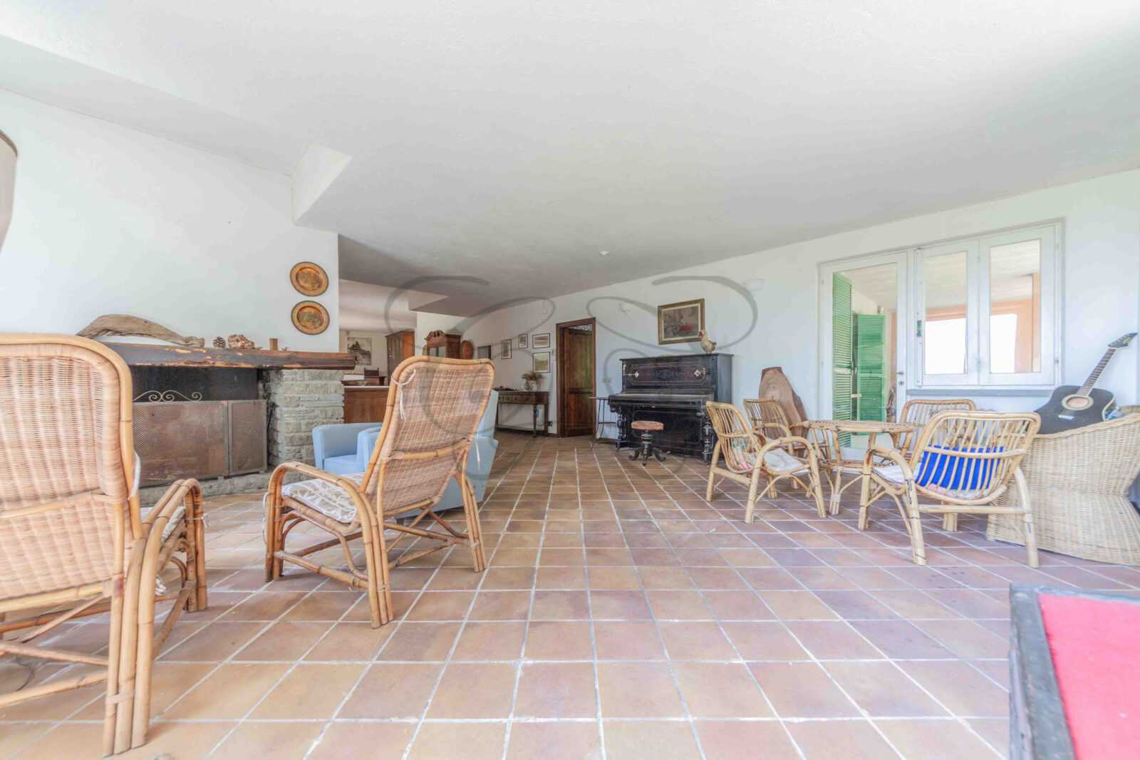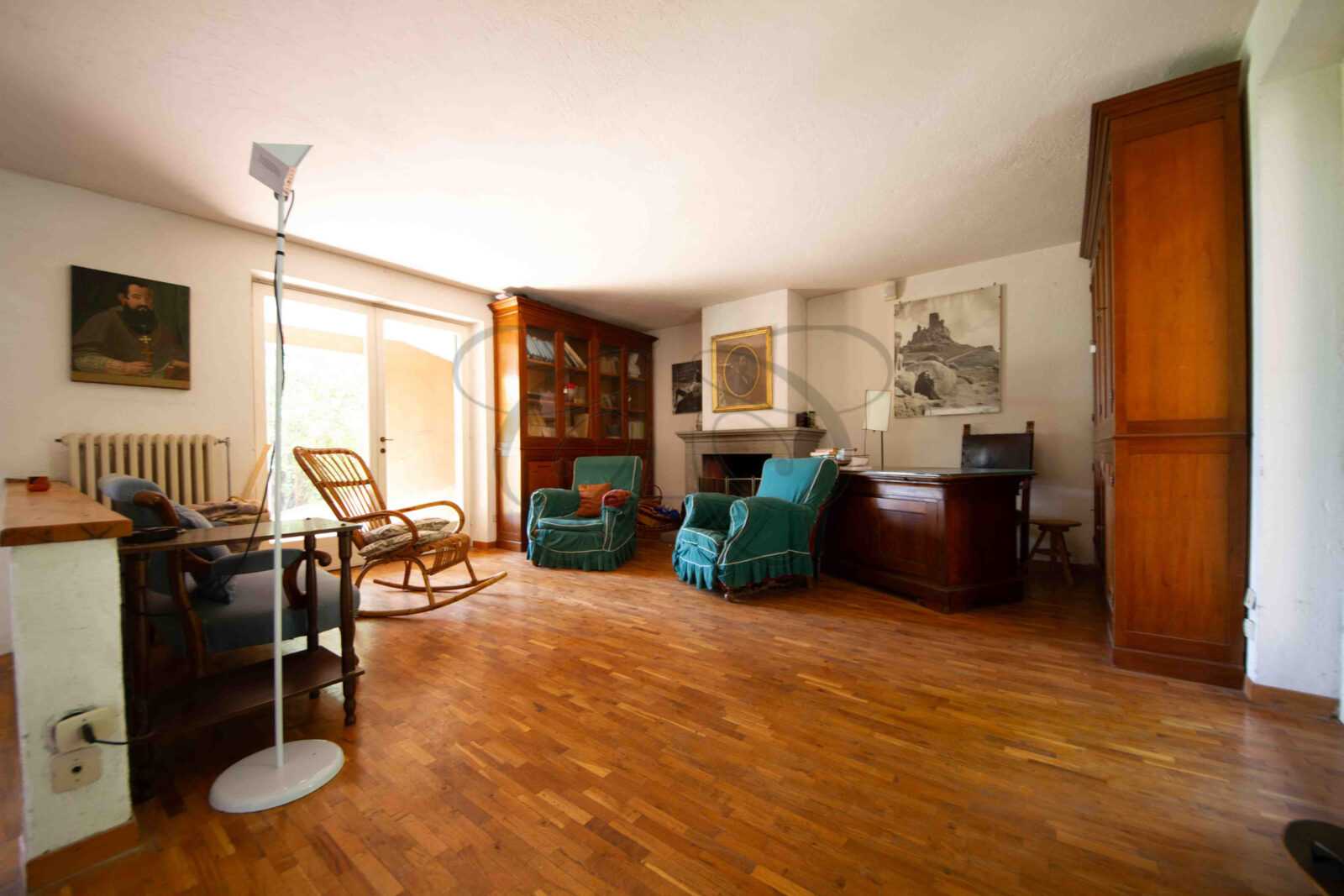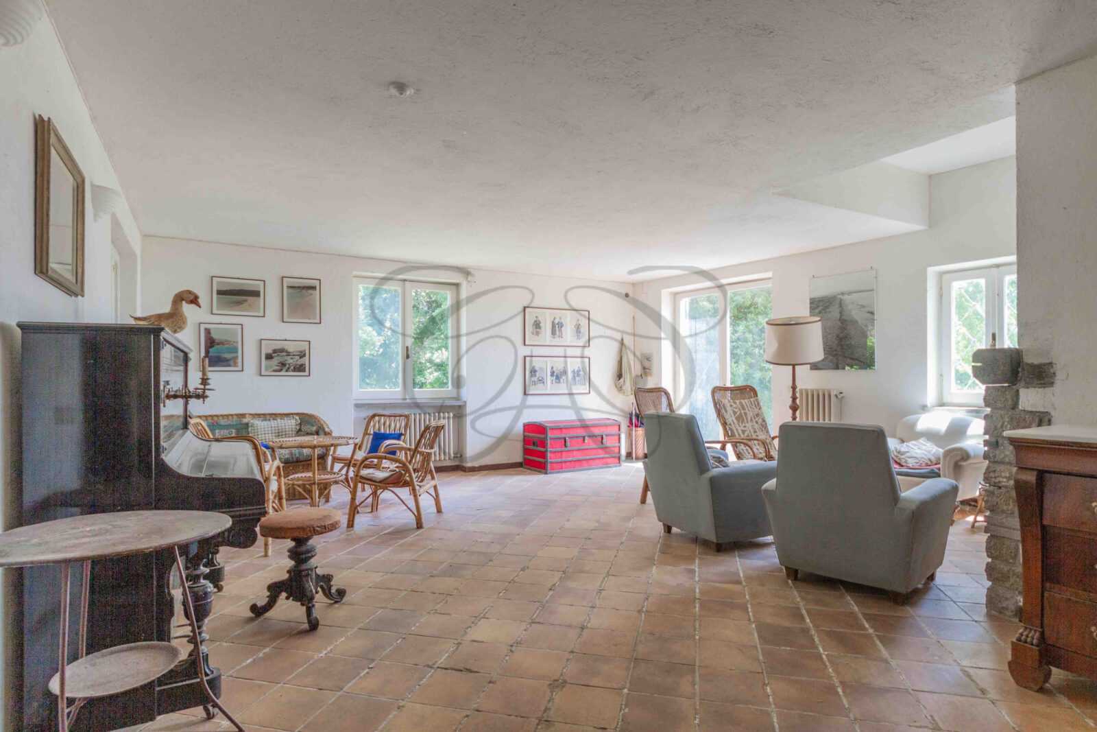 Completano questo livello un salotto più intimo con camino in pietra, che crea un’atmosfera accogliente, e una cucina spaziosa e funzionale, capace di ospitare anche le famiglie più numerose. Su questo stesso piano si trova anche un appartamento, che può essere reso indipendente, composto da una camera da letto con bagno, uno studio (o seconda camera) e una lavanderia. Questa ala della villa è particolarmente interessante per l’eventuale destinazione a personale di servizio o custodi.